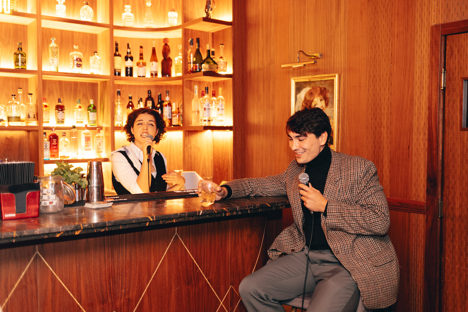 To the end of the Wold! And to whatever comes after 🥂 This performance piece, set in a bar, diving into the sentiment of being paralyzed by frustration. The grumpy regular ranting about the world, while drinking through another night of forgetting. “My mind is in: Palestine, Congo, Ethiopia, Sudan. It’s on one of the boats that might arrive at our shores tomorrow. Or yesterday? and I haven’t even kept up with the news to carry this knowledge like a burden. “ But how can we do something about it? D.Shows invited all the spectators in the bar to connect. We are deeply touched by the feedback and conversations that arose from this performance. Written by Diellza Ilgner and Dino Torlakovic Directed by Diellza Ilgner Cast: Johnny by Dino Torlakovic, Nicky by Diellza Ilgner Commissioned by Chewing Production November 2024